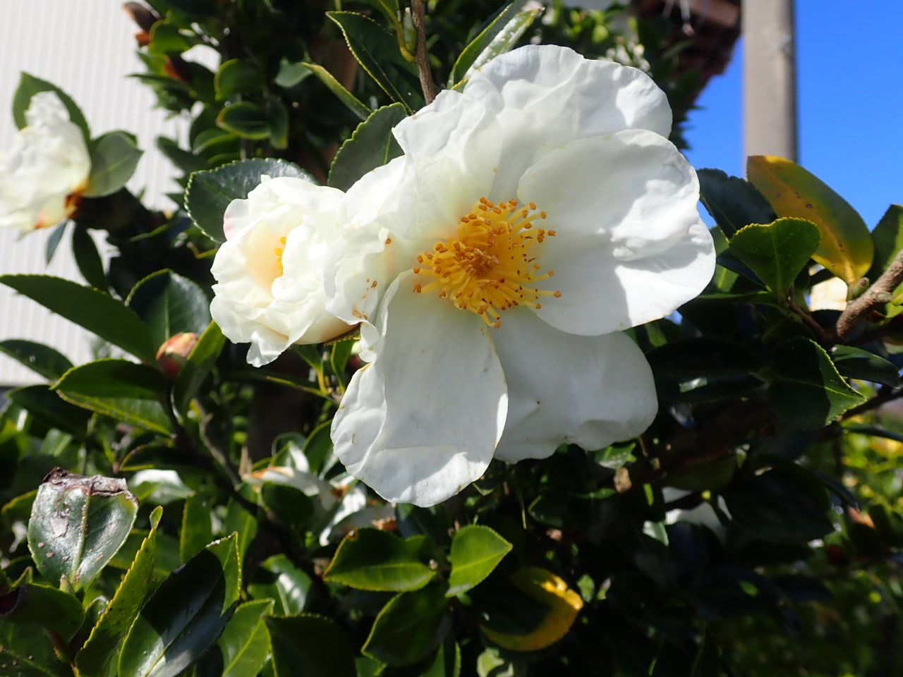 只今当社場内では『サザンカ白』が咲いています。